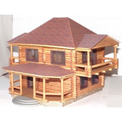 Бумажная модель-копия деревянного дома, выполненного в классическом русском стиле, набирающем сейчас популярность в загородном строительстве из бревен.