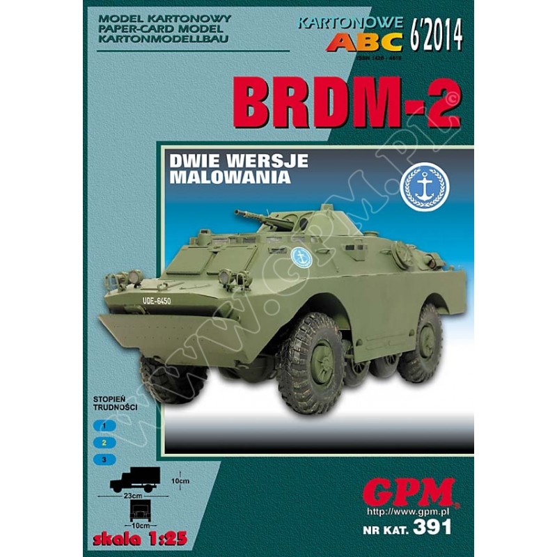 БРДМ-2 (Бронированная Разведывательно-Дозорная Машина-2) — является дальнейшим развитием БРДМ-1. Серийно производилась с 1963 по 1989 год Арзамасским машиностроительным заводом. БРДМ-2 имеет невысокую защищённость, броня защищает от пуль стрелкового оружия и осколков. Главная особенность машины — очень высокая проходимость. Кроме основного полноприводного шасси с регулируемым давлением в шинах, в средней части корпуса имеются специальные дополнительные выдвижные колеса, позволяющие, в частности, преодолевать значительные рвы, траншеи. В настоящее время в той или иной степени используется в разведывательных подразделениях более чем 50 стран. В войсках имеет прозвище "Бардак".