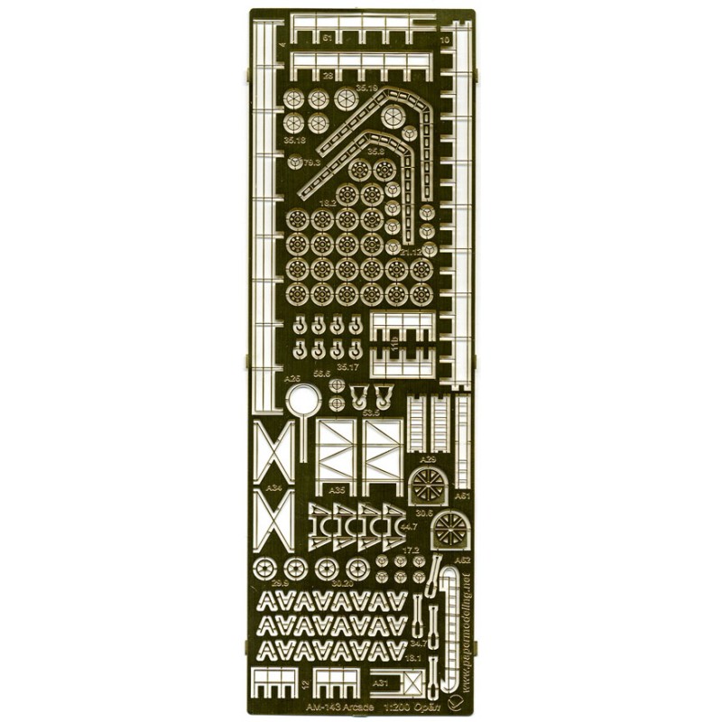 Содержит 1 пластину (47 мм х 143 мм, толщина 0,16 мм) с деталями, которые труднее всего вырезать из картона. Для их использования детали нужно аккуратно отделить от пластины. Фототравление поможет вам значительно усилить эффект от модели и придаст ей гораздо более реалистичный вид.