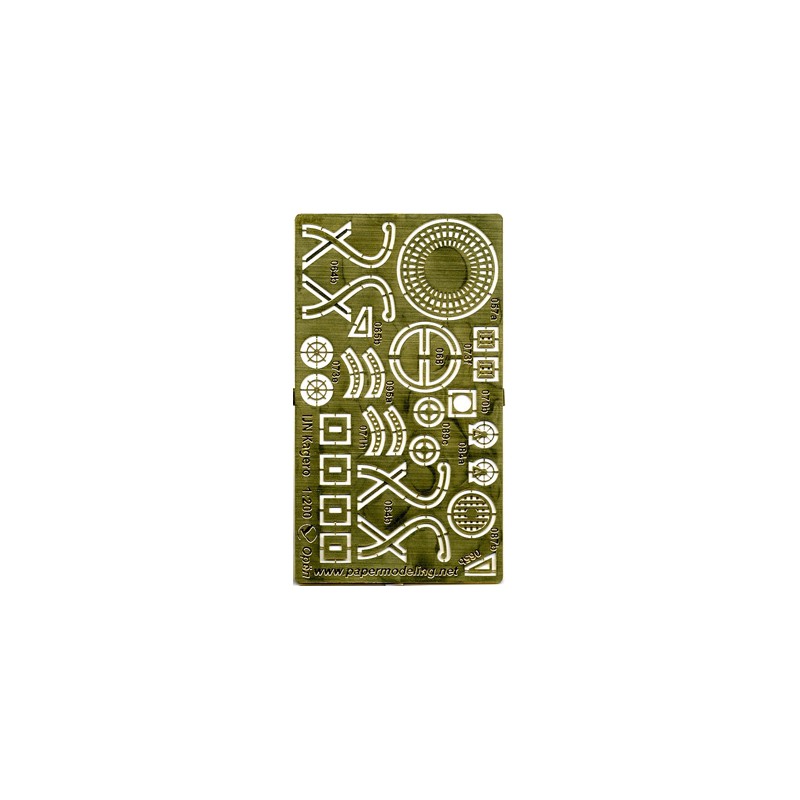 Содержит 1 пластину (64 мм х 37 мм, толщина 0,16 мм) с деталями, которые труднее всего вырезать из картона. Для их использования детали нужно аккуратно отделить от пластины. Фототравление поможет вам значительно усилить эффект от модели и придаст ей гораздо более реалистичный вид.