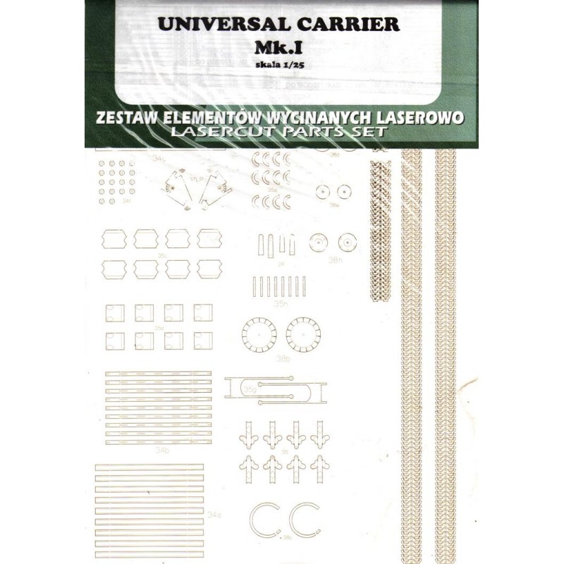 Набор деталей, вырезанных лазером для UNIVERSAL CARRIER Mk I, выпущенного издательством GPM.