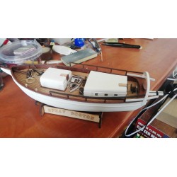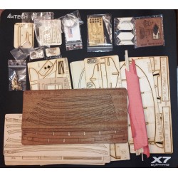 Набор яхты, на которой совершил свой одиночное кругосветное плавание канадско-американский мореплаватель и исследователь Джошуа Слокам, выполненный из дерева. Часть деталей выполнена фототравлением. Паруса и флаг из ткани.